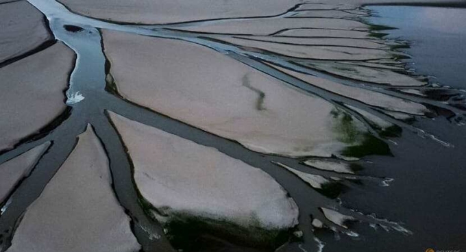 Ảnh chụp từ trên không cho thấy tình trạng khô hạn tại hồ Bà Dương, tỉnh Giang Tây, Trung Quốc ngày 28/8. Ảnh: Reuters.
