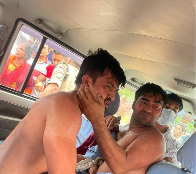 Một đoạn video được đăng tải trên mạng cho thấy các nghi phạm cởi trần, dường như đã bị đánh đập ngồi bên trong một chiếc xe cảnh sát.