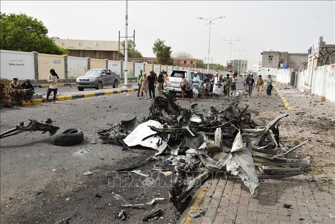 Hiện trường một vụ đánh bom xe ở Aden, Yemen. Ảnh tư liệu: THX