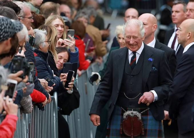 Vợ chồng Tân vương Anh hôm qua được các em học sinh và một ban nhạc chào đón khi đến Dunfermaline, một địa điểm mang tính lịch sử, để chúc mừng thị trấn này chính thức lên thành phố. Nhân sự kiện, Vua Charles III mặc váy tartan (trang phục truyền thống của người Scotland), trong khi vợ ông cũng mặc chiếc áo khoác màu xanh cùng màu. Đây là lần đầu tiên vợ chồng tân vương thực hiện nhiệm vụ chung từ sau tang lễ của Nữ hoàng Elizabeth II hôm 19/9.