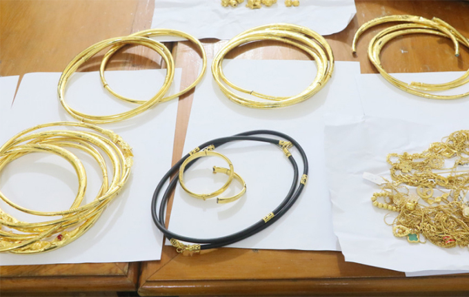 Lực lượng chức năng thu lại lô trang sức gồm kiềng, dây chuyền, lắc tay bằng vàng... Tổng giá trị tài sản bị trộm trị giá gần một tỷ đồng.