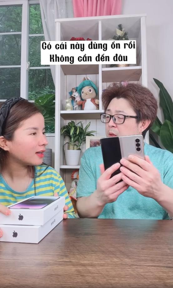 Ngay khi nhận món quà giá trị từ chồng, Bà Nhân tưởng rằng 2 chiếc điện thoại sẽ chia cho 2 vợ chồng nhưng anh Teru lại lắc đầu "không, cho vợ, anh có cái này rồi mà. Cái này dùng ổn rồi mà không cần dùng đến cái đó đâu". Xúc động trước tình cảm mà chồng dành cho mình, Đức Nhân đã không kìm được hạnh phúc mà thốt lên "cảm ơn chồng" cùng với đó là một nụ hôn đầy ấm áp.