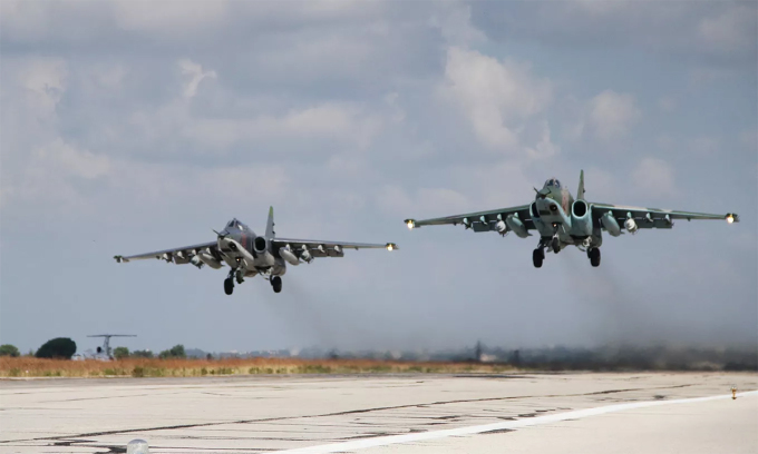 Cường kích Su-25 cất cánh từ căn cứ Khmeimim tại Syria tháng 10/2015. Ảnh: RIA Novosti.