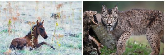 Linh miêu Iberia và ngựa hoang dã được tái thả tại Đông Tây Ban Nha cùng với kền kền đen. Ảnh: Rewilding Europe.