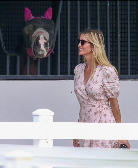 Ivanka Trump được nhìn thấy mặc váy hoa ngắn, đi giày thể thao cùng con gái Arabella (11 tuổi) đến một trung tâm học cưỡi ngựa. Khi đi ngang qua chuồng ngựa, cô nán lại cười tươi khi sờ vào đầu ngựa. Sau đó Ivanka cùng con gái tiến đến chào hỏi giáo viên và các học viên khác. Khi con gái cưỡi lên lưng ngựa, Ivanka đứng gần chăm chú quan sát.