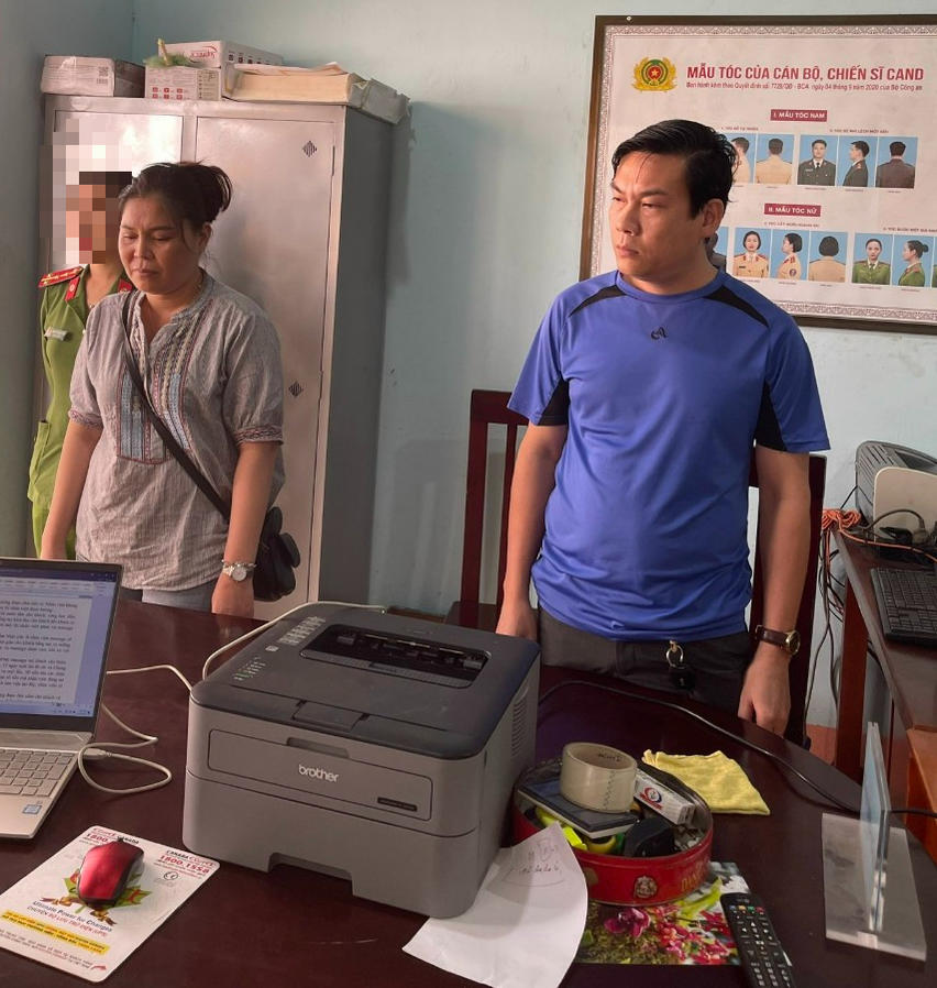 Hai đối tượng Mai và Long tại cơ quan công an. Ảnh: CACC