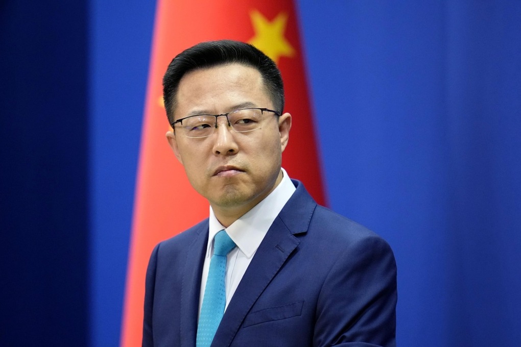 Người phát ngôn Bộ Ngoại giao Trung Quốc Triệu Lập Kiên tại cuộc họp báo ở Bắc Kinh ngày 31/10. Ảnh: Kyodo.