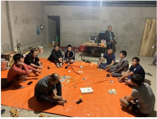 Tại thời điểm bị bắt giữ có 6 người Việt Nam, hộ khẩu thường trú tại các tỉnh: Yên Bái, Phú Thọ, Thái Bình, Tuyên Quang, Hà Giang và 4 người Trung Quốc đang say sưa sát phạt nhau bằng hình thức đánh bài ba cây.