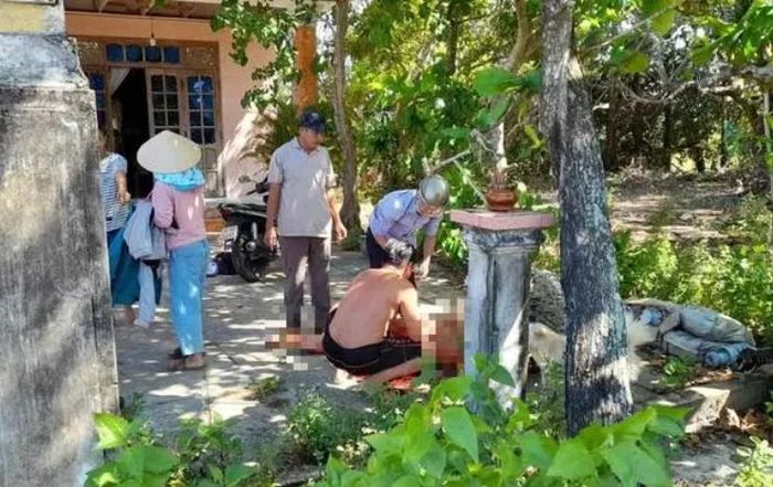 Sự việc được biết đến vào khoảng 14h ngày 9/7/2021, người dân nghe tiếng la hét, kêu cứu tại nhà thầy giáo N.N.T. (SN 1969, trú thôn Bầu Bính, xã Bình Dương, huyện Thăng Bình, tỉnh Quảng Nam) - Hiệu Trưởng Trường THCS Hoàng Diệu liền chạy qua thì nhìn thấy một nam thanh niên đi xe máy ra. Người dân sau đó phát hiện ông T. bị đâm trọng thương nằm gục trước sân nhà, người bê bết máu. (Ảnh: Vietnamnet)