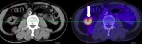 Bệnh nhân tự đi nội soi đại trực tràng kiểm tra định kỳ, kết quả đại tràng phải có tổn thương sùi vào lòng đại tràng. Gia đình đưa bà H. đến Trung tâm Y học hạt nhân và Ung bướu, Bệnh viện Bạch Mai để khám và điều trị.