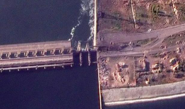 Tại khu vực sông Dnieper, ảnh vệ tinh cho thấy hai cây cầu cùng với một cầu vận tải và một cầu đường sắt khác ở khu vực thượng nguồn đập Nova Kakhovka bị phá hủy.