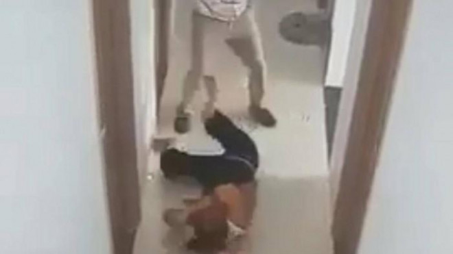 Trước đó, xuất hiện đoạn clip do camera an ninh của khách sạn ghi lại, người đàn ông cầm cây gỗ đánh liên tục khoảng 50 cái vào tay, chân và đầu chị T.