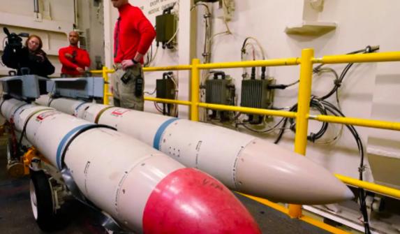 Tên lửa không đối đất AGM-88 trên tàu sân bay USS Gerald R. Ford, ngoài khơi bờ biển Virginia vào tháng 10. Ảnh NY Times.