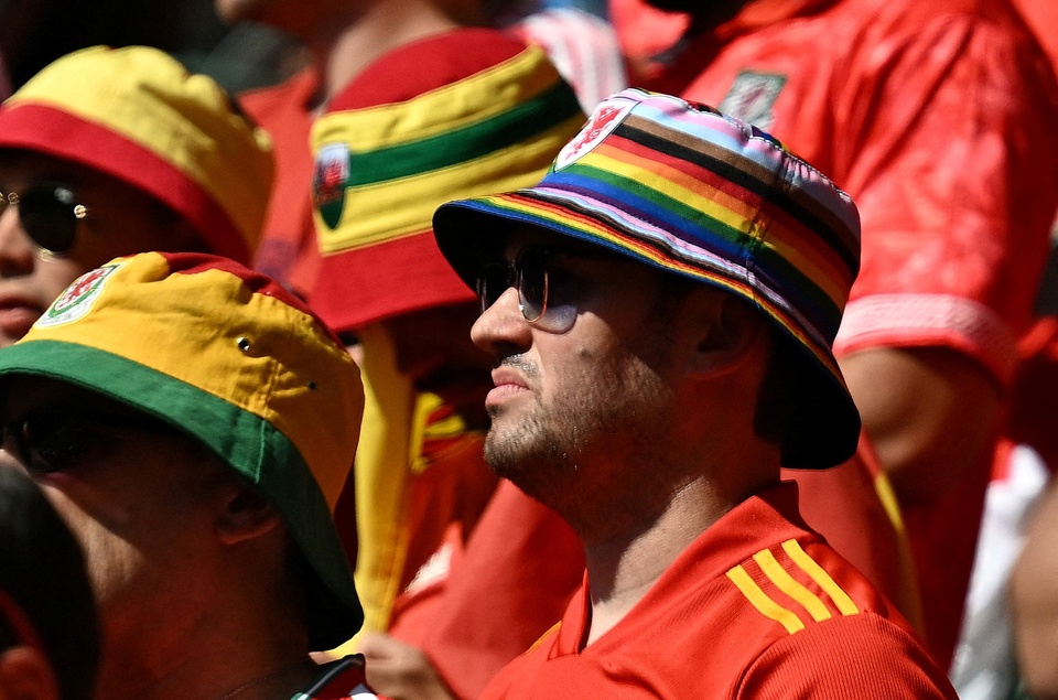 Một cổ động viên xứ Wales đội mũ cầu vồng trong trận gặp tuyển Iran ngày 25/11. Ảnh: Reuters.