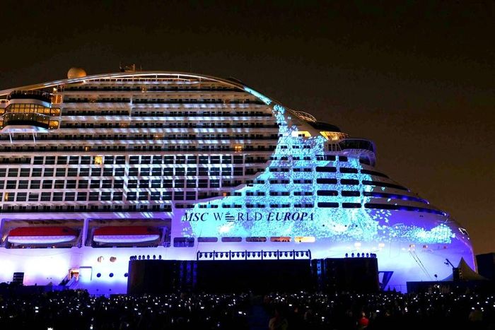 MSC World Europa là tàu du lịch hàng đầu mới ra mắt gần đây của MSC Cruises. Ảnh: Giuseppe Cacace/AFP.