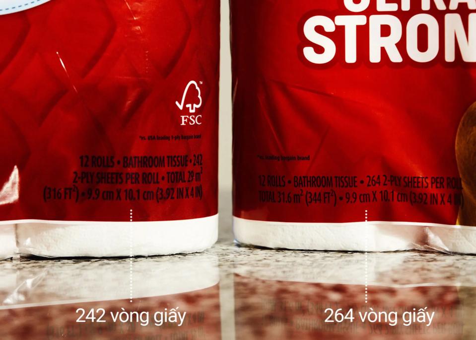 Gần đây, trang Mouse Print đã phát hiện tình trạng shrinkflation trong giấy vệ sinh. Ông Dworsky viết: “Hầu như mọi nhãn hiệu giấy vệ sinh đều giảm kích cỡ trong nhiều năm qua".