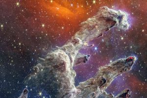 Trước đó vào tháng 10, cộng tác viên của James Webb, nhà vật lý thiên văn Rogier Windhorst đã chia sẻ 2 hình ảnh riêng biệt của "Cột sáng thế" khi chụp bởi MIRI và NIRCam. Theo Windhorst, bức xạ của các ngôi sao già đã góp phần định hình mây khí thành những cây cột."Chúng nặng và hình thành sớm hơn Mặt Trời. Chính những bức xạ cực tím màu xanh trong hàng triệu năm đã tạo nên hình dáng những cây cột này", Windhorst chia sẻ.