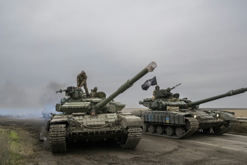 Xe tăng Ukraine di chuyển gần thành phố Kherson ngày 18/11. Ảnh: Reuters.