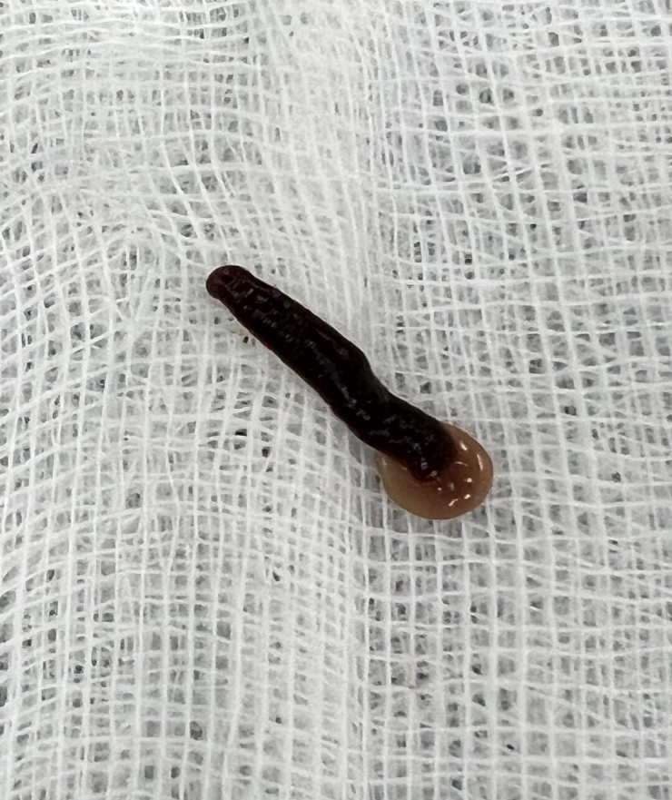 "Sau 45 phút nổ lực tìm kiếm, dị vật được gắp ra là một con đỉa còn sống dài 5cm, to gần bằng chiếc đũa bám chặt trong khe mũi trên bên phải của bệnh nhân. Đây là con đỉa to, hút máu rất khỏe, mà người dân hay gọi là đỉa trâu. Ngay sau khi gắp được dị vật ra, bệnh nhân đã hết các triệu chứng ngứa ngáy và khó thở, tình trạng sức khoẻ ổn định". Ths.Bs. Nguyễn Văn Hòa – Trưởng Đơn nguyên Đầu mặt cổ, khoa Tai mũi họng, Bệnh viện Đa khoa tỉnh Thanh Hoá cho bệnh nhân cho biết.
