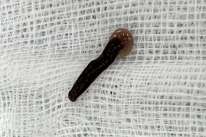 Dị vật được gắp ra là một con đỉa còn sống dài 5 cm, to gần bằng chiếc đũa bám chặt trong khe mũi trên bên phải của bệnh nhân. "Đây là con đỉa to, hút máu rất khỏe, mà người dân hay gọi là đỉa trâu. Ngay khi con đỉa được gắp ra, sức khỏe bệnh nhân đã ổn định, không còn triệu chứng khó thở, đau vùng mũi, họng nữa" - bác sĩ Nguyễn Văn Hòa, Trưởng Đơn nguyên đầu mặt cổ, Khoa Tai - Mũi - Họng, Bệnh viện Đa khoa tỉnh Thanh Hóa, cho hay.