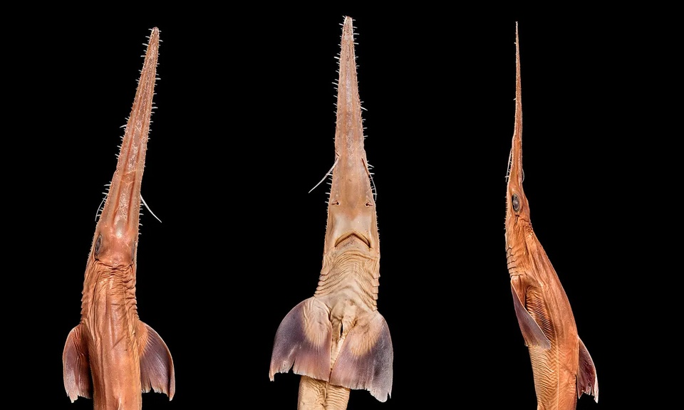 Cá mập lưỡi cưa dùng chiếc mũi đặc thù làm vũ khí săn mồi hữu dụng. Ảnh: Bảo tàng lịch sử tự nhiên.