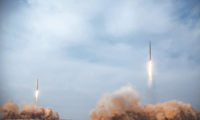 Tên lửa được phóng lên trong một cuộc diễn tập ở miền Trung Iran. Ảnh minh họa: AFP