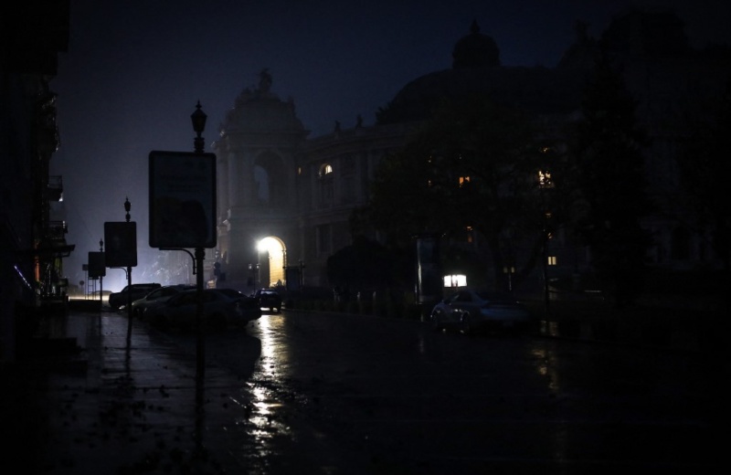 Một con phố ở thành phố Odessa chìm trong bóng tối do các mạng lưới điện ngừng hoạt động. Ảnh: AFP