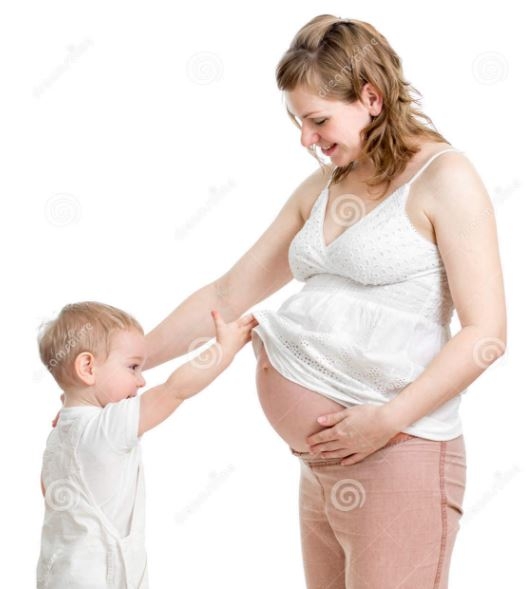 Một cậu bé 3 tuổi ngồi cạnh một bà bầu.