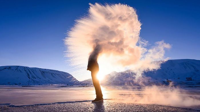 Nước hất lên không trung lập tức biến thành băng - Ảnh: RBTH