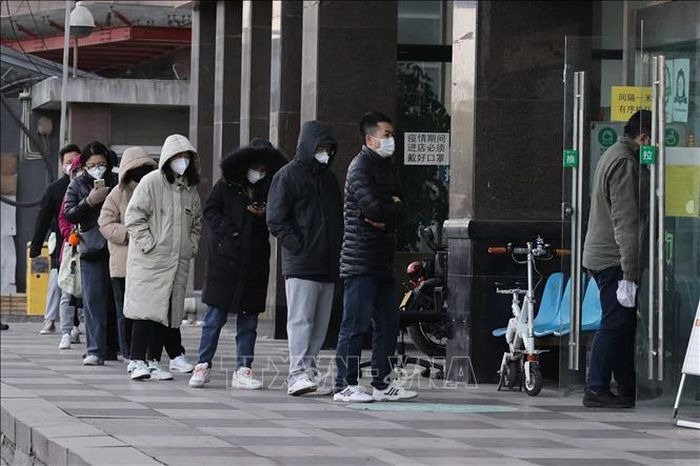 Người dân xếp hàng mua bộ xét nghiệm COVID-19 tại Thiểm Tây, Trung Quốc ngày 20/12/2022. Ảnh: AFP/TTXVN