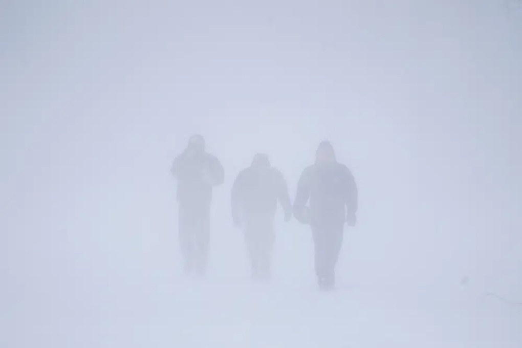 Ba người đàn ông đi bộ xuống Đại lộ Richmond khi trận bão tuyết tấn công Buffalo ngày 24/12. Ảnh: AFP.