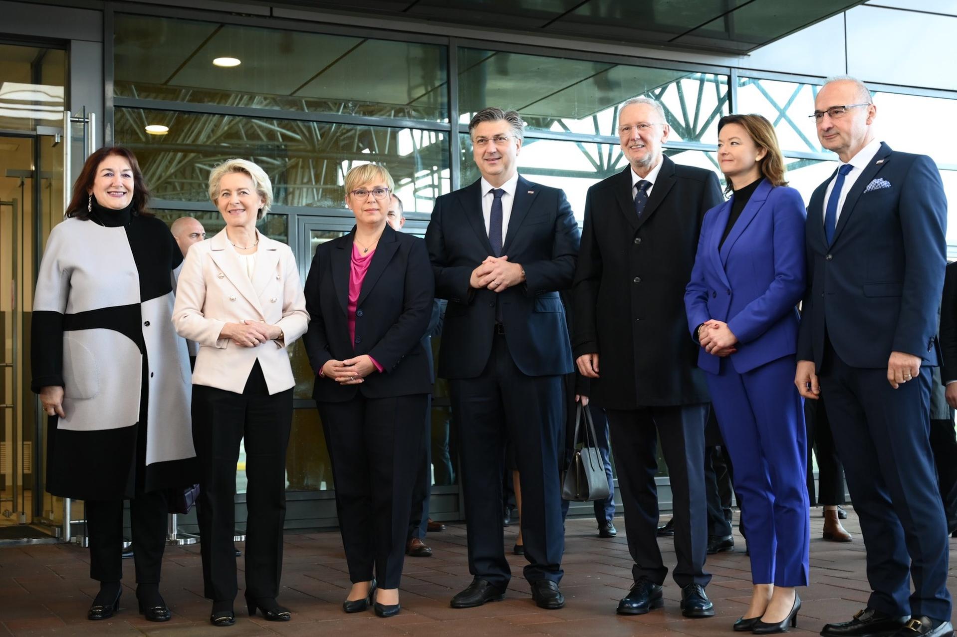 Chủ tịch Ủy ban châu Âu (EC), bà Ursula von der Leyen (thứ hai từ trái sang) thăm Croatia trong thời khắc lịch sử. Ảnh: @andrejPlenkovic.