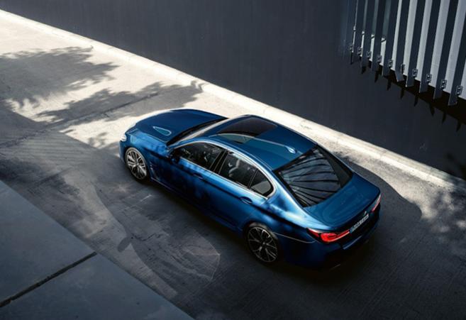 Đầu xe vẫn xuất hiện lưới tản nhiệt hình quả thận đặc trưng với điểm nhấn là đường viền mạ crôm sáng bóng nổi bật. Đèn pha của BMW 5-Series gây chú ý với các dải LED hình chữ L được bố trí cạnh nhau tạo nên đồ họa ánh sáng chính xác và hiện đại. Đường viền của đèn pha được thiết kế mỏng hơn mang lại nét hiện đại. Xe sử dụng mâm hợp kim 19 inch kiểu chữ V.
