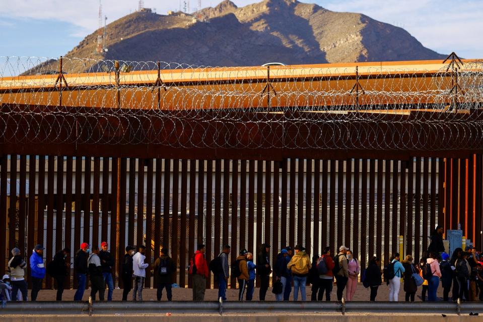 Dòng người xếp hàng chờ xin tị nạn vào thành phố El Paso hôm 5/1. Ảnh: Reuters.