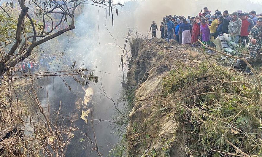Hiện trường vụ rơi máy bay gần sân bay Pokhara ngày 15/1. Ảnh: Online Kharbar.