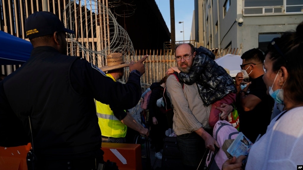 Người tị nạn Ukraine chuẩn bị qua biên giới tại Tijuana, Mexico, vào Mỹ, ngày 4/4/2022.