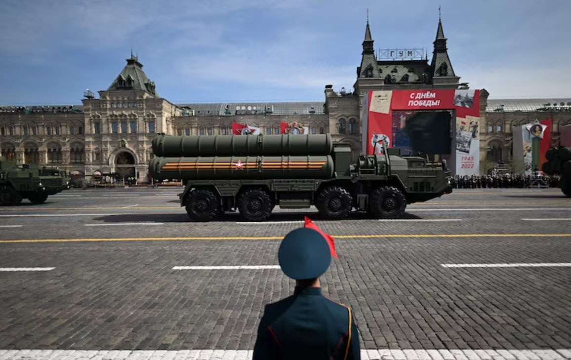 Các hệ thống phòng không tên lửa S-400 của Nga diễu hành qua Quảng trường Đỏ trong buổi diễn tập cho lễ duyệt binh Ngày Chiến thắng ở trung tâm Moscow vào ngày 7/5. Ảnh: AFP