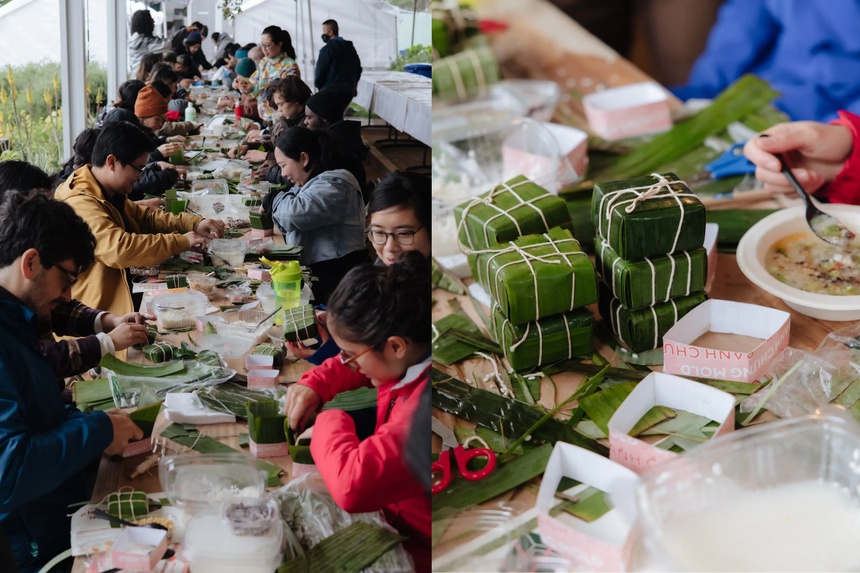 Buổi làm bánh chưng trong khuôn khổ sự kiện Bánh Chưng Collective. Ảnh: New York Times.