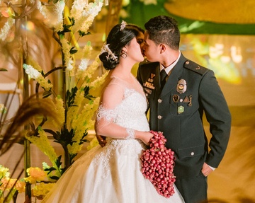 Cô dâu ở Philippines cầm bó hành thay hoa trong lễ cưới. Ảnh: Philippine Star.