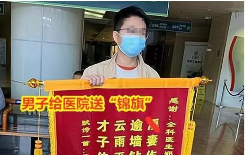 Theo 163, người đàn ông đã đến Bệnh viện Nhân dân Thiệu Hưng với một tấm biểu ngữ. Trên biểu ngữ, người đàn ông cảm ơn một nam bác sĩ của bệnh viện đã chăm sóc nữ y tá - vợ của anh ta trong những ngày tháng qua.