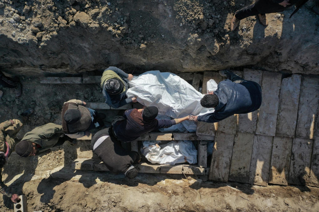 Các thành viên Mũ Trắng, nhóm dẫn đầu nỗ lực giải cứu tại nơi phe đối lập kiểm soát ở Syria, đăng video cho thấy mộ tập thể được đào chiều 8/2 trên bãi đất trống cạnh nghĩa trang ở thị trấn Jindayris, tỉnh Aleppo, miền bắc Syria, để chôn cất các nạn nhân thiệt mạng trong thảm họa động đất mạnh 7,8 độ xảy ra hồi đầu tuần.