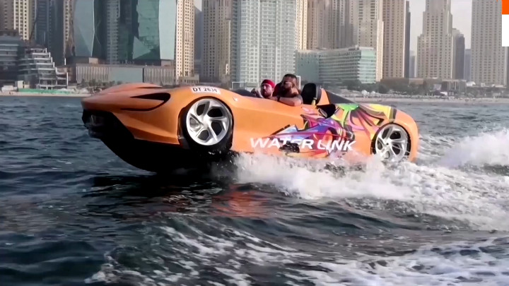 Khách du lịch đến với Dubai không khỏi kinh ngạc khi những siêu xe không chỉ chạy trên cạn mà có thể lướt dưới nước như phi thuyền.