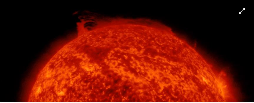Theo tờ The Independent đưa tin hôm 10/2, một dải plasma hình vòng cung khổng lồ đã bắn lên từ bề mặt Mặt Trời, sau đó vỡ ra trong khí quyển và rơi xuống, bay vòng quanh cực bắc của ngôi sao với tốc độ hàng nghìn km/phút, rồi biến mất.