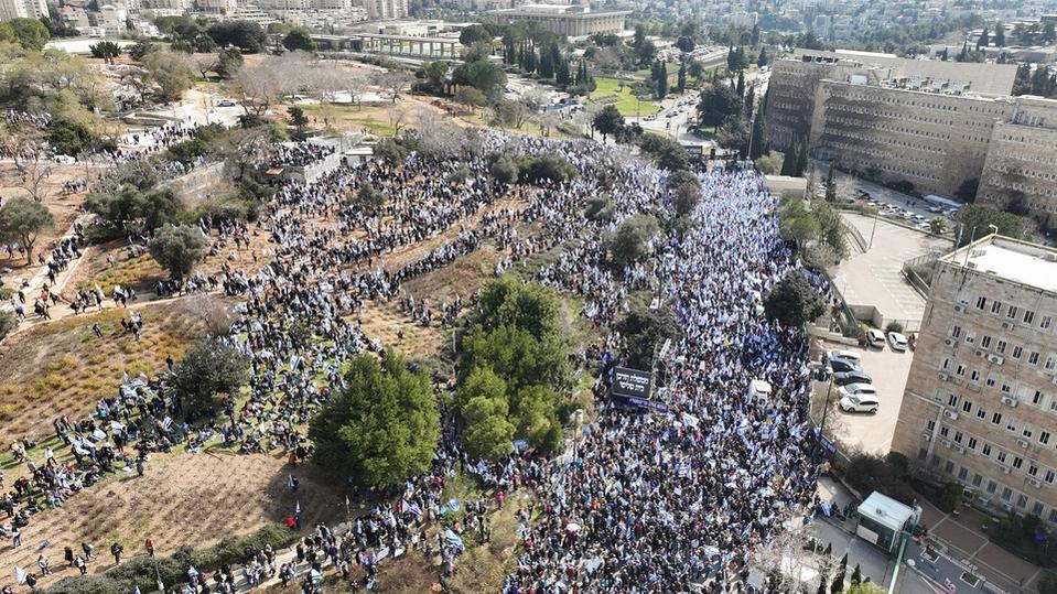 Ước tính 50.000 người mọi lứa tuổi, xuất thân đã tập trung quanh khu tổ hợp văn phòng của chính phủ ở trung tâm Jerusalem, ngăn chặn các tuyến giao thông. Cuộc biểu tình hôm 13/2 là đỉnh điểm phong trào phản kháng của cử tri Israel đã kéo dài sang tuần thứ 6 nhằm chống lại kế hoạch cải tổ hệ thống tư pháp đầy tranh cãi của chính quyền Thủ tướng Netanyahu.