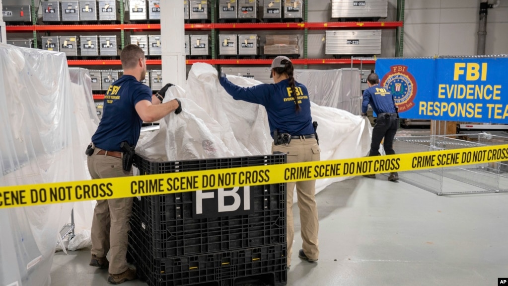Mảnh vỡ khinh khí cầu Trung Quốc được xét nghiệm trong phòng thí nghiệm của FBI tại Quantico, Virginia.