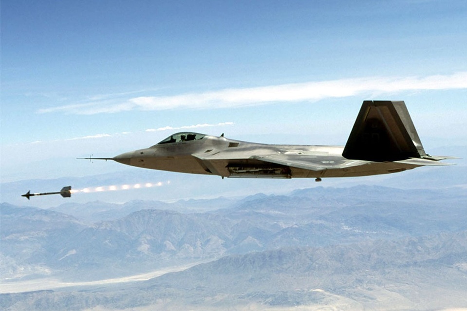 Tiêm kích F-22 Raptor phóng tên lửa AIM-120. Ảnh: Không quân Mỹ.
