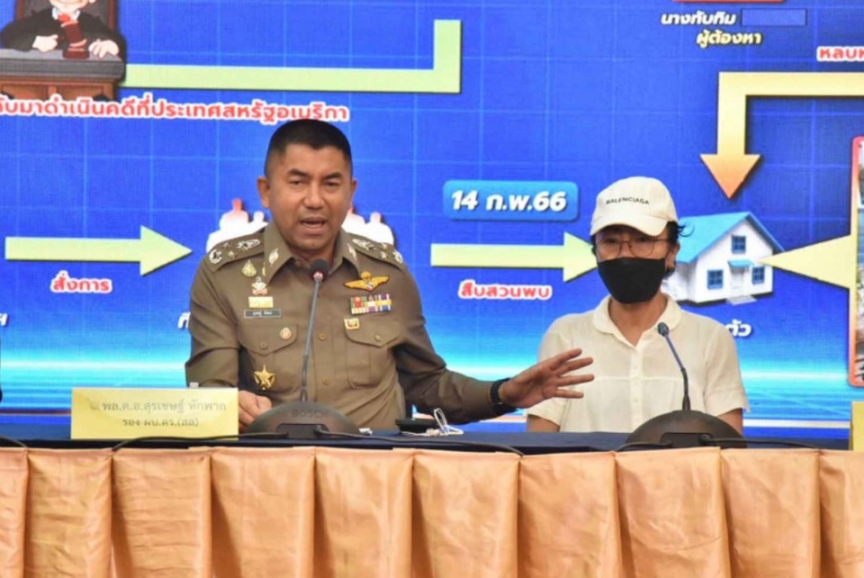 Bà Tubtim Howson (phải) xuất hiện trong họp báo của cảnh sát ngày 10/2. Ảnh: Cảnh sát Thái Lan/Bangkok Post.