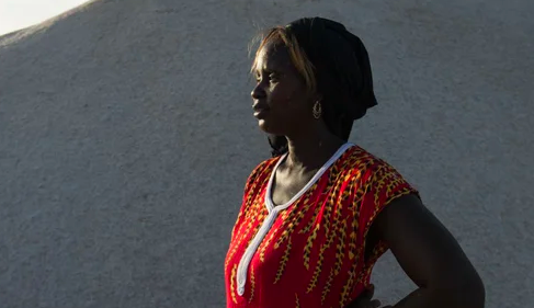 Diouf bên ngoài ngôi nhà của cô ở làng Ndiemou.