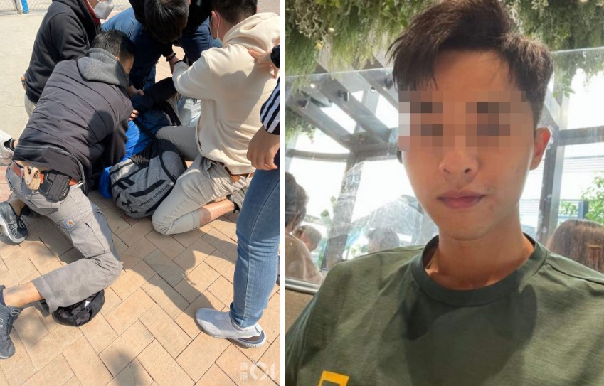 Cảnh sát khống chế Alex Kwong, chồng cũ của Abby Choi. Ảnh: HK01.