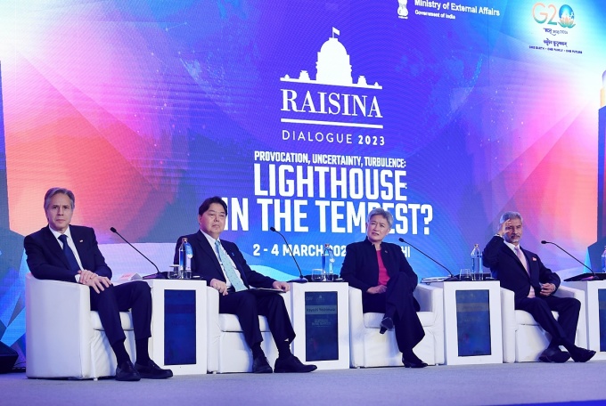 Ngoại trưởng Ấn Độ S Jaishankar chủ trì cuộc họp với Ngoại trưởng Mỹ Antony Blinken, Ngoại trưởng Nhật Bản Yoshimasa Hayashi và Ngoại trưởng Canada Penny Wong chỉ một ngày sau khi gặp Ngoại trưởng Trung Quốc Tần Cương bên lề hội nghị ngoại trưởng G20 tại New Delhi.
